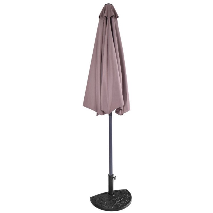 High quality and brand new9ft half round umbrella, popular color and modern designSteel pole and high-quality polyester fabricFive steel ribbed construction, sturdy and durableEasy to cooperate, hand-crank liftUV protective and water repellantStable for a beach umbrella, sun tent, rain shelterWe suggest you do not leave umbrella open on a windy day